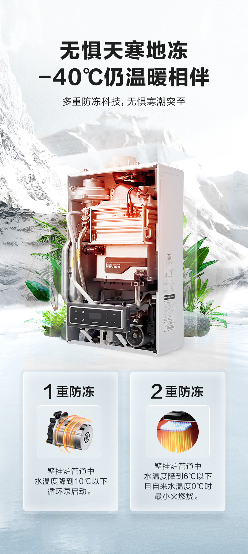在严寒的冬季,壁挂炉需要采取防冻措施,当室外温度低于0摄氏度时,请确保壁挂炉处于防冻模式,以避免因结冰导致的水压过高问题。