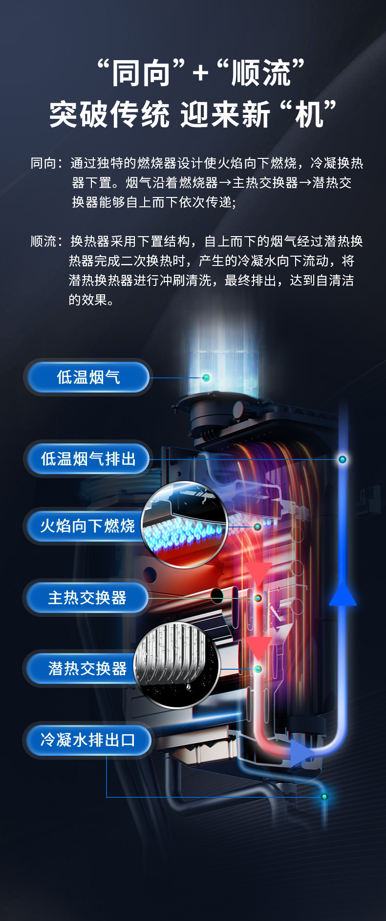 关于壁挂炉的内部清洁,也可以选择一些具备有自清洁功能的燃气壁挂炉,譬如庆东纳碧安独家自研的“同向顺流冷凝技术”使机器本身具备有自清洁的作用,像NCB300、NCB700系列,都具备有自清洁的作用。一定程度上降低了燃气壁挂炉的清洁频率,并且延长了燃气壁挂炉的使用寿命,特别适合我国特殊的水质问题。