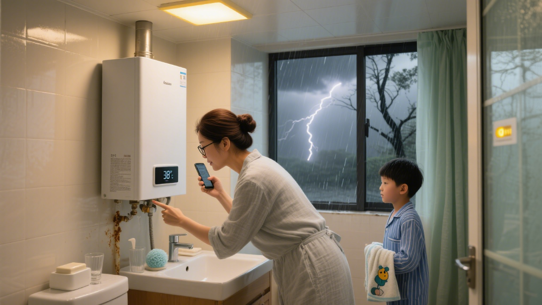 实际上,使用年限较久、突遇暴雨台风等极端天气,热水器稍有故障就可能导致CO超标、温度不稳定等安全隐患。尤其是孩子洗澡时,更需注意热水器的防护能力。
