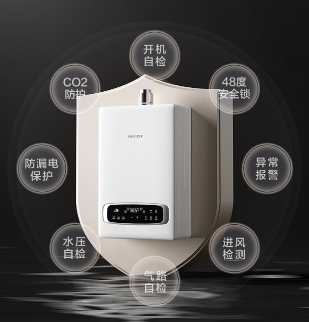 而面对以下的常见危险,庆东纳碧安的燃气热水器则做到了更好的应对。首先,就是CO泄漏问题,一般市场上的高端的燃气热水器产品内部都设置有CO泄漏的自检装置,譬如庆东纳碧安的NGW580C燃气热水器,内部设置有多维安防系统,比如其内部设置有CO防护系统,能够检测CO的浓度含量。在有CO泄漏问题的时候,能够做到及时的“报警”让用户能够提前做到防范。