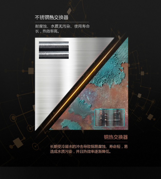 当然,在出去会产生铜绿的本身之外,使用铜材质的燃气热水器还容易出现燃气热水器容易结垢而产生水垢的现象,由于我国多数地区的水质本身水质偏硬,在加热的过程当中容易产生水垢,在实际的应用层面上,使用铜热交换器材质的燃气热水器的话,其内部容易堆积水垢,一方面影响燃气热水器的热交换器效率,另一方面也会对燃气热水器的热交换器造成一定的腐蚀,时间久了就容易产生燃气热水器内部漏水等现象的产生,影响燃气热水器的正常工作效率。