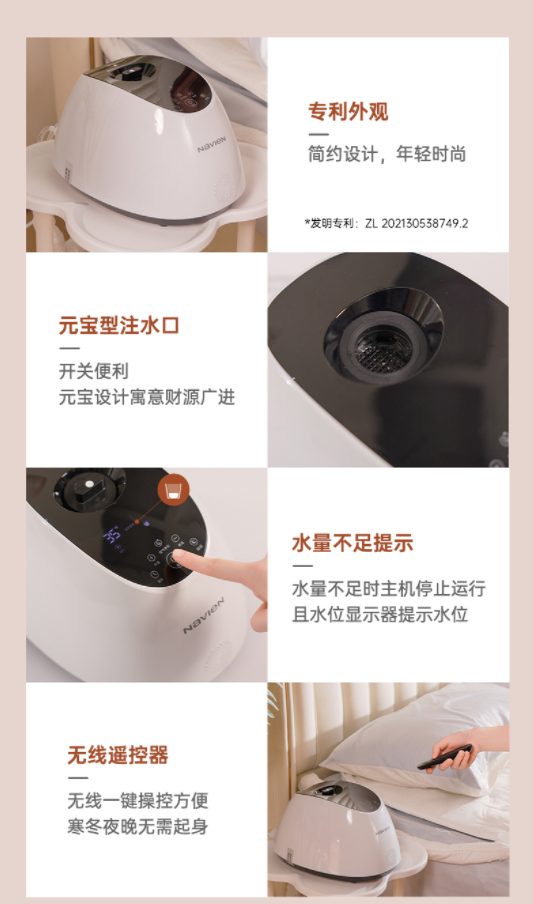 安全性方面,EMC350系列更是层层把关:15小时自动关机、儿童安全锁、主机倾斜自动断电等设计,解决了忘记关机、误操作的隐患;防低温烫伤预警(温度超38℃提示)、双向锁防漏水连接,搭配防干烧、防冻、防火等16重安全防护,将使用风险降到最低。此外,其“头疏脚密”的科学水路设计符合“头凉脚暖”的睡眠习惯,<25dB的运行噪音比阅览室背景音更轻,加上便携提手、无线遥控器等细节,兼顾了舒适与便捷。