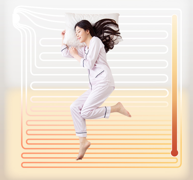 而最值得关注的,是其贴合人体设计的“头疏脚密”科学水路布管。中医讲究“头凉脚暖”的健康睡眠理念,尤其是宝宝体温调节能力较弱,头部过热易烦躁、脚部冰凉难安睡。EMC350通过精准设计水路分布,头部区域管路较稀疏,避免头部过热导致的不适;脚部区域管路更密集,能集中传递温暖,让宝宝双脚始终保持舒适温度,既符合人体生理需求,又能帮助母婴群体更快进入深度睡眠,提升整体睡眠质量。