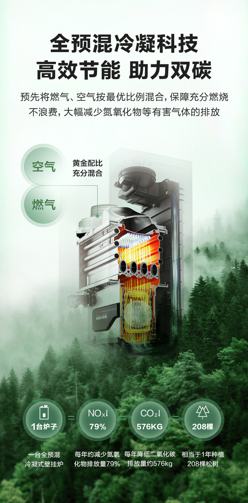 常规冷凝壁挂炉需频繁清洁换热器,而庆东纳碧安全预混壁挂炉搭载“同向顺流冷凝技术”,从根源上解决了这一痛点。其独特的向下燃烧结构,使烟气与冷凝水自上而下同向流动,冷凝水自然冲刷潜热交换器,带走沉积物实现自清洁。搭配专利不锈钢换热器,抗腐蚀与耐用性远超传统材质,将保养周期延长至更久,大幅降低维护成本。