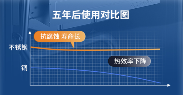 冷凝壁挂炉的最大优势就是节能,热效率是关键。国标要求不低于99%,庆东纳碧安的冷凝炉基本都远超这个标准,尤其是带“全预混冷凝”“智能混氢”的机型,燃气燃烧更充分,不会浪费,长期用能省不少燃气费。选的时候直接看产品标注的这两个关键词,准没错。其次,热效率越稳定越省气,普通壁挂炉的热效率随着使用年限的增长下降迅速,而庆东纳碧安壁挂炉的热效率则表现的更稳定,更久使用下来不用担心热效率下滑造成的耗气量增加。