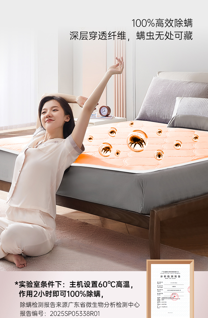 值得一提的是,这款床垫还自带深层除螨功能,60℃高温作用2小时就能100%除螨,潮湿季节也能让床垫保持干爽。加上柔软亲肤的磨毛布床罩,触感舒适不硌人,整体使用体验十分出色。