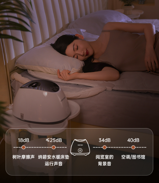 夜间睡眠最怕噪音干扰,庆东纳碧安这款床垫采用悬浮式进口BLDC水泵,从声源处实现轻音减震,运行噪音低于25dB。这一数值堪比树叶摩擦的声音,远低于阅览室背景音(34dB)和空调运行噪音(40dB),即使是浅眠人群也能安然入睡。同时,科学的水路布管设计暗藏巧思,遵循“头疏脚密”的分布原则,契合人体“头凉脚暖”的睡眠生理需求,让温暖更贴合身体,进一步提升睡眠舒适度。