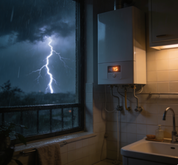 这项专利技术通过APS风压传感器、直流变速风机与CPU主板的智能联动,构建起主动防风系统。传感器实时精准感知外部风压变化,将数据快速传递给CPU主板,主板即时计算最优燃气量与风量配比,再通过调节燃气比例阀和风机转速,确保燃气充分燃烧,同时避免废气回灌。经实测,该技术可抵御12级台风,即便在暴雨、强风等极端天气下,仍能保证热水器稳定运行,彻底解决高层用户“大风天用不了热水”的痛点。