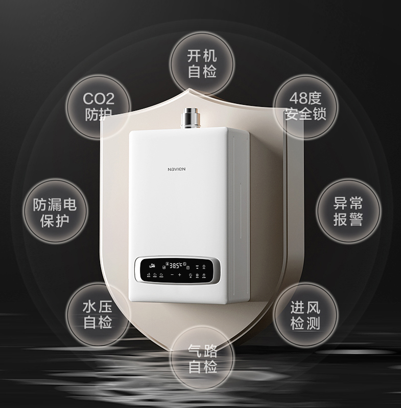 除了卓越的防风性能,这款热水器还具备多重优势。其采用全密闭燃烧系统和低噪音变频风机,不仅进一步增强了抗风能力,还能降低运行噪音;搭配双重防冻科技,即便在-20℃的低温环境中也能正常工作。在安全防护上,它拥有开机自检、CO₂防护、水压自检等多维安防系统,全方位保障使用安全。