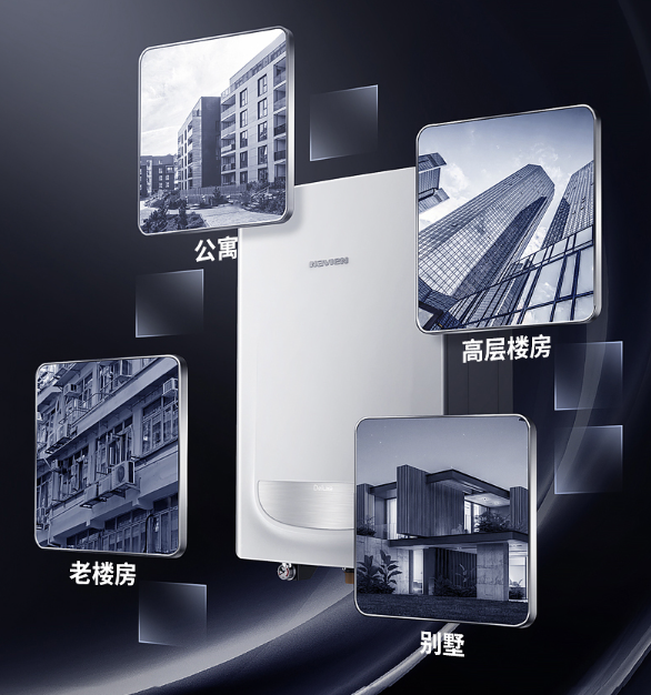 面对这样的情况,可以选择庆东纳碧安的燃气壁挂炉,庆东纳碧安的燃气壁挂炉普遍具备有超低水压启动方面的技术优势,往往在低水压的情况下,仍旧能够稳定的运行,我们就以庆东纳碧安的常见款式燃气壁挂炉deluxe系列的燃气壁挂炉而言,其热水允许水压为0.02–1.0MPa,远超普通的燃气壁挂炉的适应标准,能够满足在高层或者自建房的水压较低的情况下的正常运行问题。