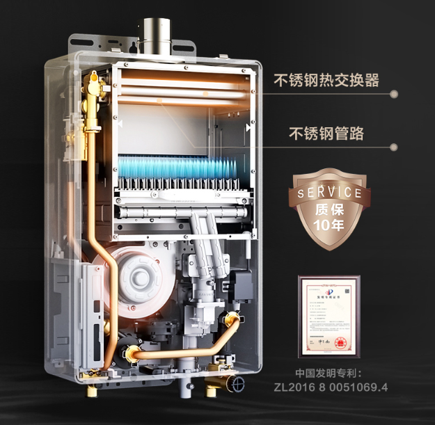 其次,庆东纳碧安的燃气热水器搭载有专利不锈钢热交换器,相比于日系的无氧铜而言,使用寿命更长,其专利的不锈钢热交换器,在具体使用的时候,表现为耐冲刷、耐冲压、耐腐蚀、耐侵蚀,整体的材料寿命可以长达33年,使用起来更放心,时间长了用担心一些小问题。